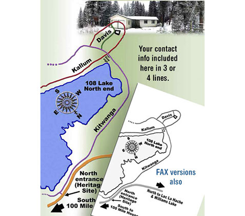 Locater maps are designed to blend/fit with web or brochure design. They are to scale with main roads and waters named.