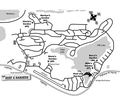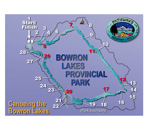The website, also designed in these colours, gave names to the numbered landmarks. The red numbers are portages.